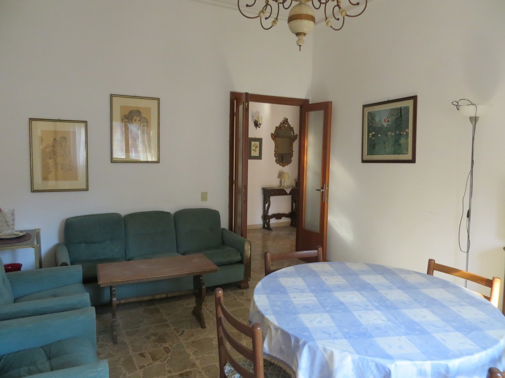 Vendesi immerso nel verde appartamento di mq. 125 circa, molto luminoso, ubicato al piano primo composto di: ampio ingresso, soggiorno, cucinotto, tinello, tre camere, due bagni, un terrazzo e tre balconi. Il tutto è corredato di ampio garage e cantina. In attesa di certificazione energetica. Da ammodernare.