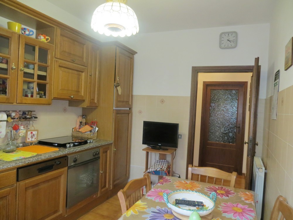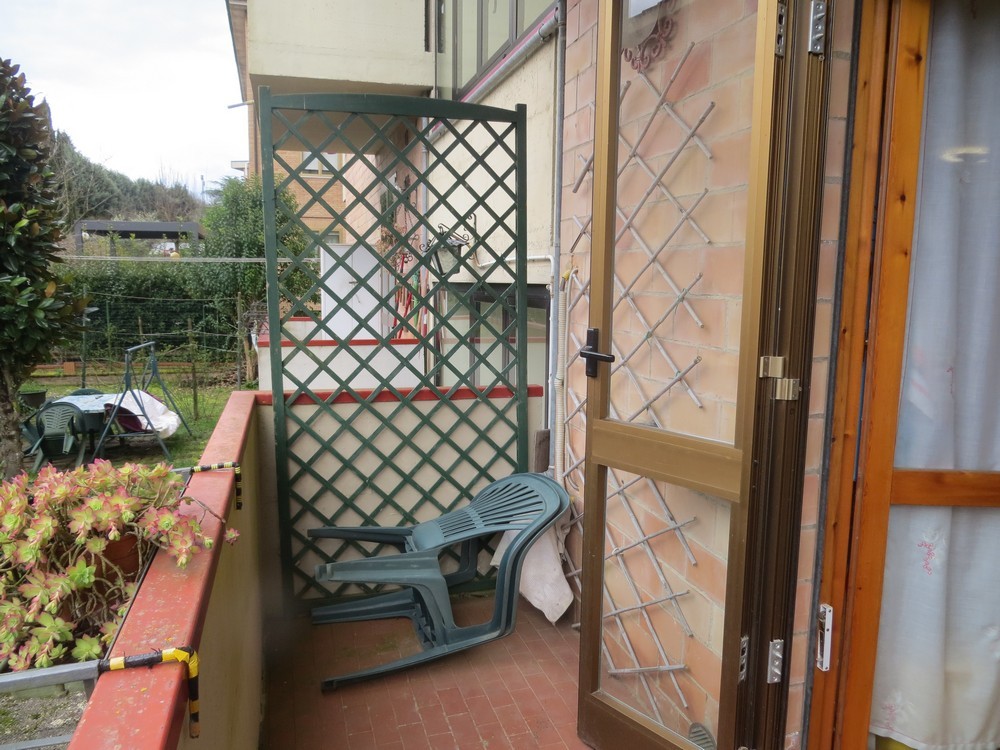 Vendesi appartamento al piano terra rialzato di mq. 150 circa composto di: ingresso, soggiorno con terrazzo che accede al giardino privato, cucina con terrazzo, due camere matrimoniali, ampia camera singola, due bagni di cui uno finestrato; dal soggiorno si accede al rustico corredato di caminetto ed al garage, oltre al posto auto coperto nel piazzale condominiale. In attesa di certificazione energetica. L'immobile è in buono stato manutentivo.